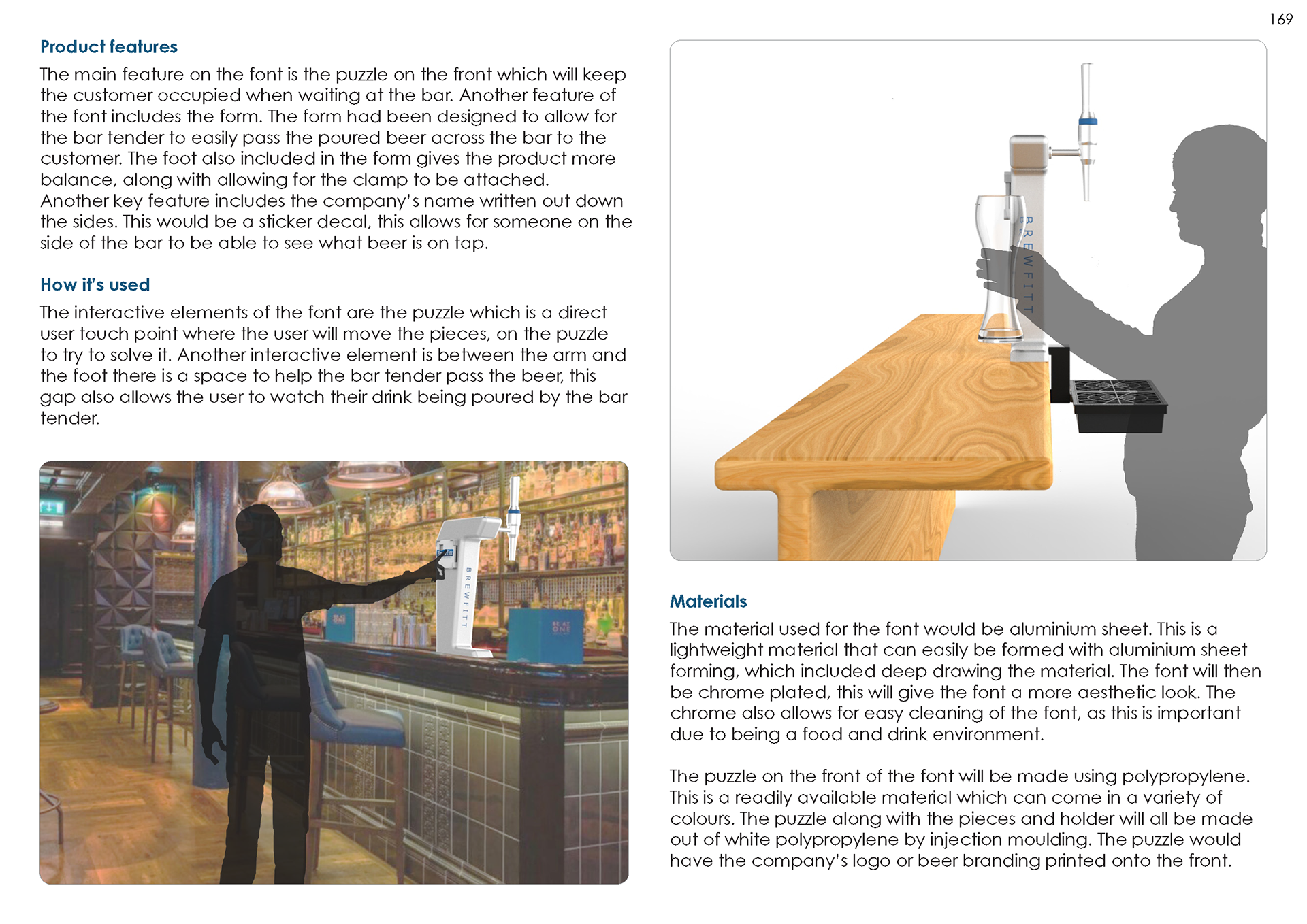 In my second year at university, I had the opportunity to work on a collaborative live brief for the company Brewfitt. For this I worked with another product design student to design an interactive bar font to entertain the customer when waiting for a drink. For this we designed a bar font with a puzzle feature which allows the customer to interact with the bar and solve the puzzle when waiting in line.